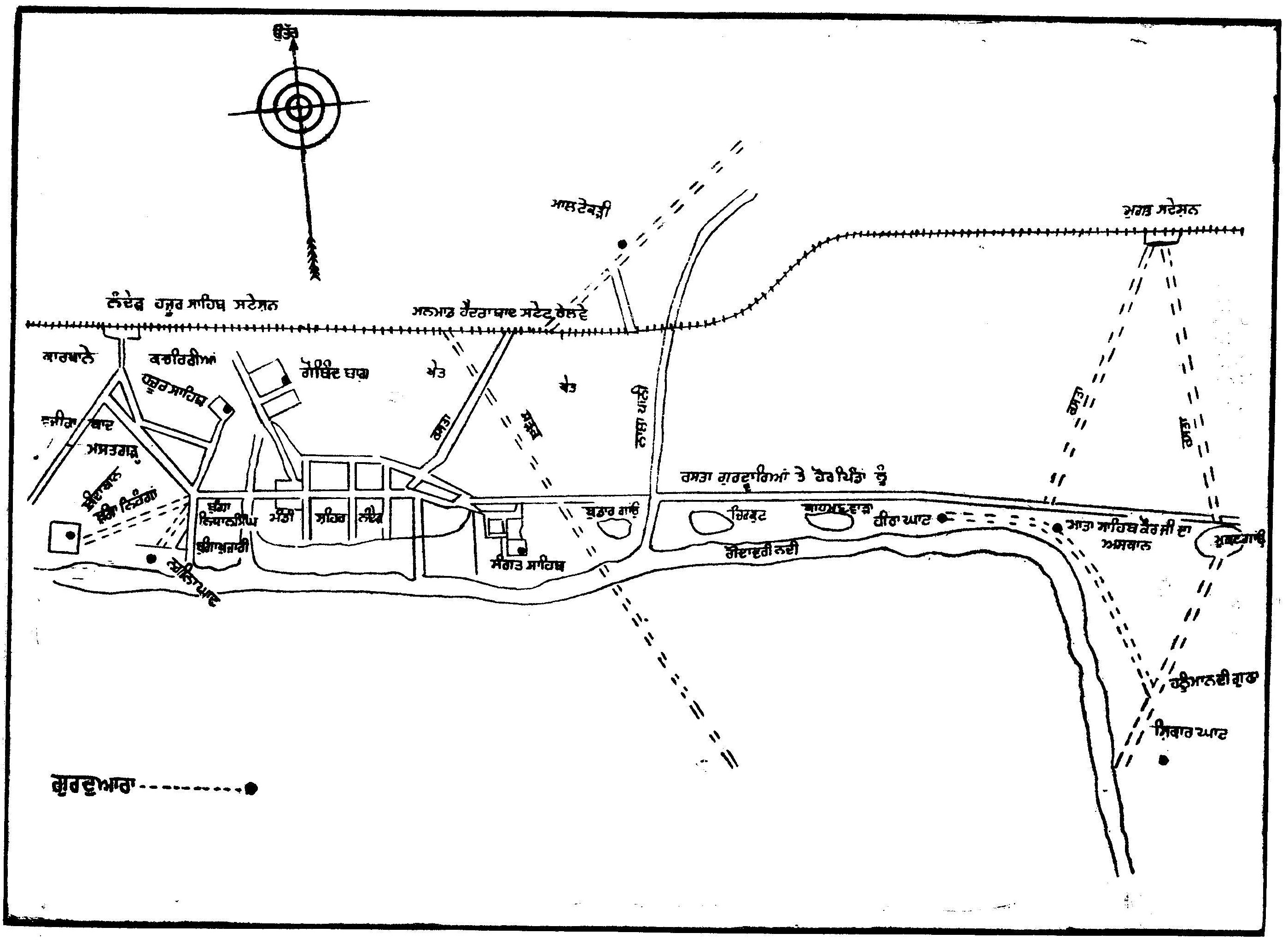 ਹੀਰਾ ਘਾਟ––ਇਥੇ ਗੁਰੂ ਸਾਹਿਬ ਨੇ ਬਹਾਦਰ ਸ਼ਾਹ ਦਾ ਦਿੱਤਾ ਹੀਰਾ ਗੋਦਾਵਰੀ ਵਿਚ ਸੁੱਟ ਦਿਤਾ ਸੀ। ਇਹ ਥਾਂ ਨਾਂਦੇੜ ਦੇ ਦੱਖਣ ਵਿਚ ਹੈ।