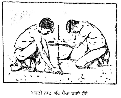 ਪੱਥਰਾਂ ਦੇ ਹਥਿਆਰ ਬਣ ਚੁੱਕਣ ਪਿੱਛੋਂ ਉਨ੍ਹਾਂ ਨੂੰ ਚਮਕੀਲੇ ਤੇ ਤਿੱਖੇ ਕਰਨ ਲਈ ਰਗੜਿਆ ਗਿਆ ਹੋਵੇਗਾ। ਇਸ ਤਰ੍ਹਾਂ ਜਿਹੜੀ ਗਰਮੀ ਪੈਦਾ ਹੋਈ ਹੋਵੇਗੀ ਉਸ ਤੋਂ ਮਨੁੱਖ ਨੇ ਰਗੜ ਨਾਲ ਅੱਗ ਪੈਦਾ ਕਰਨ ਦਾ ਤਰੀਕਾ ਕੱਢਿਆ ਹੋਵੇਗਾ।