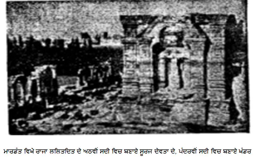 ਕਸ਼ਮੀਰ ਦਾ ਰਾਜਾ ਲਲਿਤਾਦਿਤ੍ਯ ਵਡਾ ਪ੍ਰਤਾਪੀ ਹੋਇਆ ਹੈ, ਜਿਸ ਨੇ ਕਨੌਜ ਦੇ ਰਾਜਾ ਯਸ਼ੋਵਰਧਨ ਨੂੰ ਸਨ ੭੪੦ ਵਿੱਚ ਜਿੱਤਕੇ ਆਪਣਾ ਰਾਜ ਦੂਰ ਤੀਕ ਫੈਲਾਇਆ. ਯਸ਼ੋਵਰਧਨ ਦਾ ਬਣਵਾਇਆ ਮਾਰਤੰਡ (ਸੂਯ) ਮੰਦਿਰ ਜਗਤਪ੍ਰਸਿੱਧ ਸੀ, ਜਿਸ ਦੇ ਹੁਣ ਖੰਡਹਰ ਦਿਖਾਈ ਦਿੰਦੇ ਹਨ.