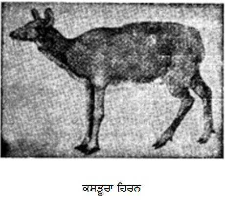 ਕਸਤੂਰੀ ਸੰ. कस्तूरी मृग, कस्तूरिका, कस्तूरी. ਇੱਕ ਜਾਤਿ ਦਾ ਮ੍ਰਿਗ, ਜਿਸ ਦੀ ਨਾਭਿ ਵਿੱਚੋਂ ਸੁਗੰਧ ਵਾਲਾ ਦ੍ਰਵ੍ਯ (ਪਦਾਰਥ) ਕਸ੍ਤੂਰੀ ਨਿਕਲਦਾ ਹੈ. Musk-deer.