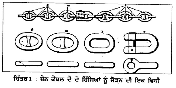 ਇਸ ਕੰਮ ਲਈ ਮੁੜਵੀਆਂ ਕੜੀਆਂ ਅਤੇ ਸੱਟਡ ਦੀ ਵਰਤੋਂ ਦਾ ਸੁਝਾਅ 1813 ਵਿਚ ਦਿੱਤਾ ਗਿਆ। ਚੇਨ ਨੂੰ ਉਲਝ ਜਾਣ ਤੋਂ ਬਚਾਉਣ ਅਤੇ ਕੜੀਆਂ ਨੂੰ ਜੋੜਨ ਲਈ ਕ੍ਰਾੱਸ-ਪੀਸ ਦੀ ਵਰਤੋਂ 1816 ਵਿਚ ਸ਼ੁਰੂ ਹੋਈ (ਚਿੱਤਰ 1 ਅਤੇ 2)