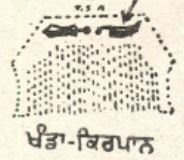 –ਖੰਡਾ ਕਿਰਪਾਨ, ਪੁਲਿੰਗ : ਖੰਡੇ ਤੇ ਕਿਰਪਾਨ ਦੀ ਸ਼ਕਲ ਦੇ ਲੋਹੇ ਦੇ ਛੋਟੇ ਟੁਕੜੇ ਜੋ ਕੰਘੇ ਆਦਿ ਤੇ ਲਾਏ ਜਾਂਦੇ ਹਨ