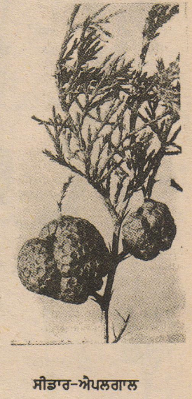 ਬੀਮਾਰੀਆਂ ਵਿਚ ਗਾਲ ਦੀ ਮਹੱਤਤਾ––ਕਈ ਵਿਸ਼ੇਸ਼ ਤਰ੍ਹਾਂ ਦੇ ਗਾਲਾਂ ਦੀ ਕਿਰਿਆਤਮਕ ਤੌਰ ਤੇ ਬੀਮਾਰੀਆਂ ਵਿਚ ਬਹੁਤ ਮਹੱਤਤਾ ਹੈ ਕਿਉਂਕਿ ਬੀਮਾਰੀ ਦੇ ਫ਼ੈਲਾਅ ਵਿਚ ਇਨ੍ਹਾਂ ਦਾ ਕਾਫ਼ੀ ਹਿੱਸਾ ਹੁੰਦਾ ਹੈ। ਇਕ ਬੀਮਾਰੀ ਜੋ ਸੀਡਾਰ-ਐਪਲ ਰਸਟ ਦੇ ਨਾਂ ਨਾਲ ਜਾਣੀ ਜਾਂਦੀ ਹੈ ਅਤੇ ਇਕ ਉੱਲੀ (Gymnospor-angiumjuniperi virgi-nianae) ਦੁਆਰਾ ਪੈਦਾ ਹੁੰਦੀ ਹੈ, ਲਾਲ ਦਿਆਰ ਦੇ ਪੱਤਿਆਂ ਤੇ ਲੱਗ ਜਾਂਦੀ ਹੈ ਅਤੇ ਮੀਜ਼ਬਾਨ ਸੈੱਲਾਂ ਨੂੰ ਉਤੇਜਿਤ ਕਰਦੀ ਹੈ ਜਿਸ ਨਾਲ ਸੈੱਲ ਭੂਰੇ ਰੰਗ ਦੇ ਗਾਲ ਵਿਚ ਬਦਲ ਜਾਂਦੇ ਹਨ ਜਿਨ੍ਹਾਂ ਨੂੰ ਦਿਆਰ ਦੇ ਸੇਬ ‘ਸੀਡਾਰ ਐਪਲਜ਼’ ਕਿਹਾ ਜਾਂਦਾ ਹੈ। ਇਹ ਗਾਲ ਇਕ ਸਾਲ ਤੱਕ ਪੱਕਦੇ ਨਹੀਂ ਅਤੇ ਆਉਂਦੀ ਬਹਾਰ ਰੁੱਤ ਵਿਚ ਇਹ ਆਕਾਰ ਵਿਚ ਵਧ ਜਾਂਦੇ ਹਲ ਅਤੇ ਇਹ ਆਪਣੇ ਹਲਕੇ ਡੂੰਘਾਂ ਵਿਚੋਂ ਲੰਮੇ ਪਤਲੇ ਅਤੇ ਚਮਕੀਲੇ ਗੂੰਦਾ ਵਰਗੇ ਕੰਢੇ ਰਿਸਾਉਂਦੇ ਹਨ। ਇਨ੍ਹਾਂ ਕੰਢਿਆਂ ਵਿਚ ਬਹੁਤ ਸਾਰੇ ਦੋ ਸੈੱਲੇ ਉੱਲੀਆਂ ਦੇ ਸਪੋਰ ਹੁੰਦੇ ਹਨ ਜੋ ਇਨ੍ਹਾਂ ਹੀ ਕੰਢਿਆਂ ਉਪਰ ਉੱਗ ਪੈਂਦੇ ਹਨ ਅਤੇ ਸਪੋਰਿਡੀਆ ਮੁਢਲੇ ਦੋ ਸੈੱਲਾਂ ਤੇ ਪੈਦਾ ਹੋਣ ਵਾਲੇ ਫ਼ਿਲਾਮੈਂਟ ਤੇ ਹੀ ਚਾਰ ਹੋਰ ਸਪੋਰ ਪੈਦਾ ਕਰ ਦਿੰਦੇ ਹਨ। ਇਹ ਸਪੋਰਿਡੀਆ ਹਵਾ ਦੇ ਜ਼ੋਰ ਰਾਹੀਂ ਨਿਕਲ ਜਾਂਦੇ ਹਨ ਅਤੇ ਇਹ ਸੇਬ ਦੇ ਪੱਤਿਆਂ ਜਾਂ ਫ਼ਲਾਂ ਤੇ ਟਿਕ ਜਾਂਦੇ ਹਨ। ਇਥੇ ਜੇਕਰ ਜਲਵਾਯੂ ਹਾਲਤਾਂ ਅਨੁਕੂਲ ਹੋਣ ਤਾਂ ਇਹ ਲਾਗ ਸਥਾਪਿਤ ਕਰ ਲੈਂਦੇ ਹਨ ਅਤੇ ਸੇਬਾਂ ਦੀ ਇਕ ਬੜੀ ਖ਼ਤਰਨਾਕ ਬੀਮਾਰੀ ਪੈਦਾ ਹੋ ਜਾਂਦੀ ਹੈ। ਜਦੋਂ ਇਨ੍ਹਾਂ ਗਾਲਾਂ ਵਿਚੋਂ ਸਪੋਰ ਮੁੱਕ ਜਾਂਦੇ ਹਨ ਤਾਂ ਇਹ ਸੁੱਕ ਕੇ ਡਿਗ ਜਾਂਦੇ ਹਨ।