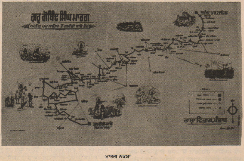 ਗੁਰੂ ਗੋਬਿੰਦ ਸਿੰਘ ਮਾਰਗ: ਆਨੰਦਪੁਰ ਸਾਹਿਬ ਨੂੰ ਦਮਦਮਾ ਸਾਹਿਬ (ਤਲਵੰਡੀ ਸਾਬੋ) ਨਾਲ ਮਿਲਾਉਣ ਵਾਲਾ ਇਕ ਮਾਰਗ ਜੋ ਗੁਰੂ ਗੋਬਿੰਦ ਸਿੰਘ ਜੀ ਦੀ ਉਸ ਯਾਤ੍ਰਾ ਨੂੰ ਸਮਰਪਿਤ ਕੀਤਾ ਗਿਆ ਹੈ ਜੋ ਉਨ੍ਹਾਂ ਨੇ 5-6 ਦਸੰਬਰ 1705 ਈ. ਦੀ ਰਾਤ ਨੂੰ ਆਨੰਦਪੁਰ ਦਾ ਕਿਲ੍ਹਾ ਛਡ ਕੇ ਮਾਲਵਾ ਖੇਤਰ ਵਲ ਕੀਤੀ ਸੀ। ਇਸ ਮਾਰਗ ਦੀ ਕੁਲ ਦੂਰੀ 640 ਕਿ.ਮੀ. ਹੈ ਅਤੇ 91 ਸਥਾਨਾਂ ਨੂੰ ਆਪਸ ਵਿਚ ਸੰਬੰਧਿਤ ਕਰਦੀ ਹੈ। ਇਸ ਮਾਰਗ ਦਾ ਉਦਘਾਟਨ 10 ਅਪ੍ਰੈਲ 1973 ਈ. ਨੂੰ ਪੰਜਾਬ ਸਰਕਾਰ ਨੇ ਆਨੰਦਪੁਰ ਸਾਹਿਬ ਤੋਂ ਇਕ ਵਿਸ਼ਾਲ ਜਲੂਸ ਕਢ ਕੇ ਕੀਤਾ, ਜਿਸ ਦੀ ਲੰਬਾਈ 21 ਕਿ.ਮੀ. ਦਸੀ ਜਾਂਦੀ ਹੈ। ਉਸ ਜਲੂਸ ਦੀ ਸਮਾਪਤੀ ਦਮਦਮਾ ਸਾਹਿਬ ਵਿਚ 13 ਅਪ੍ਰੈਲ ਨੂੰ ਵਿਸਾਖੀ ਵਾਲੇ ਦਿਨ ਹੋਈ। ਇਸ ਮਾਰਗ ਉਪਰ ਮੁੱਖ ਮੁੱਖ ਇਤਿਹਾਸਿਕ ਸਥਾਨਾਂ ਉਤੇ ਧੌਲਪੁਰੀ ਪੱਥਰ ਦੀਆਂ ਬਣੀਆਂ ਤਿੰਨ ਮੀਟਰ ਉੱਚੀਆਂ 20 ਦਸ਼ਮੇਸ਼-ਲਾਠਾਂ ਹਨ। ਇਨ੍ਹਾਂ ਪੰਜ-ਭੁਜੀ ਲਾਠਾਂ ਦੇ ਚਾਰ ਪਾਸਿਆਂ ਉਤੇ ਪੰਜਾਬੀ , ਹਿੰਦੀ , ਉਰਦੂ ਅਤੇ ਅੰਗ੍ਰੇਜ਼ੀ ਵਿਚ ਗੁਰੂ ਜੀ ਦੀ ਬਾਣੀ ਦੀਆਂ ਚੋਣਵੀਆਂ ਤੁਕਾਂ ਅੰਕਿਤ ਹਨ ਅਤੇ ਪੰਜਵੇਂ ਪਾਸੇ ਉਸ ਸਥਾਨ ਦੀ ਇਤਿਹਾਸਿਕ ਮਹੱਤਾ ਲਿਖੀ ਹੈ, ਜਿਸ ਸਥਾਨ ਉਤੇ ਉਹ ਲਾਠ ਬਣਾਈ ਗਈ ਹੈ। ਹਰ ਲਾਠ ਦੇ ਇਰਦ-ਗਿਰਦ ਪੰਜ ਪੰਜ ਪੌੜੀਆਂ ਵਾਲਾ ਪੌਣਾ ਮੀਟਰ ਉੱਚਾ ਅਤੇ 3 ਮੀ. ਚੌੜਾ ਚੌਬੂਤਰਾ ਹੈ ਅਤੇ ਲਾਠ ਦੇ ਸਿਖਰ ਉਪਰ ਸਟੀਲ ਦਾ ਖੰਡਾ ਹੈ।