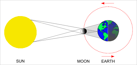 ਜਦੋਂ ਚੰਦਰਮਾ ਧਰਤੀ ਅਤੇ ਸੂਰਜ ਦੇ ਵਿਚਕਾਰ ਆ ਜਾਂਦਾ ਹੈ ਤਾਂ ਸੂਰਜ ਦੀਆਂ ਕਿਰਨਾਂ ਧਰਤੀ ਦੇ ਕੁਝ ਹਿੱਸਿਆਂ ਵਿਚ ਪਹੁੰਚਣ ਤੋਂ ਅਸਮਰੱਥ ਹੁੰਦੀਆਂ ਹਨ ਅਤੇ ਧਰਤੀ ਦੇ ਉਨ੍ਹਾਂ ਹਿੱਸਿਆ ਉੱਤੇ ਸੂਰਜ ਗ੍ਰਹਿਣ ਲਗਦਾ ਹੈ। ਉਸ ਸਮੇਂ ਸੂਰਜ ਉੱਤੇ ਦਿਸਣ ਵਾਲਾ ਕਾਲਾ ਚੱਕਰ ਚੰਦਰਮਾ ਦਾ ਹੁੰਦਾ ਹੈ।