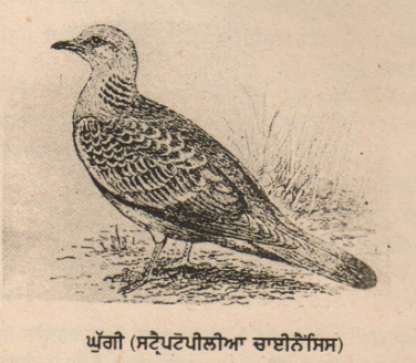 ਘੁੱਗੀ : ਇਹ ਕੋਲੰਬੀਫ਼ਾੱਰਮੀਜ਼ ਵਰਗ ਦੀ ਕੋਲੰਬਡੀ ਕੁਲ ਦੀ ਪੰਛੀ ਹੈ। ਇਸ ਦਾ ਪ੍ਰਾਣੀ-ਵਿਗਿਆਨਕ ਨਾਂ ਸਟ੍ਰੈਪਟੋਪੀਲੀਆ ਚਾਈ-ਨੈਂਸਿਸ (Streptopelia Chinensis) ਹੈ। ਹਿੰਦੀ ਵਿਚ ਇਸ ਨੂੰ ਫਾਖ਼ਤਾ ਜਾਂ ਪਰਕੀ ਵੀ ਕਹਿੰਦੇ ਹਨ।