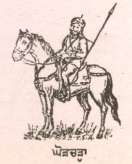–ਘੋੜਚੜ੍ਹਾ, ਵਿਸ਼ੇਸ਼ਣ / ਪੁਲਿੰਗ : ਰਸਾਲੇ ਦਾ ਸਿਪਾਹੀ, ਘੋੜੇ ਤੇ ਚੜ੍ਹਿਆ ਹੋਇਆ