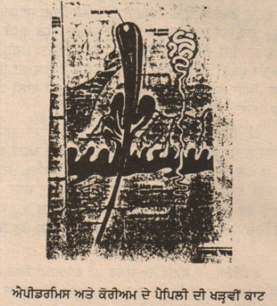 ਐਪੀਡਰਮਿਸ––ਇਹ ਇਕ-ਸੈੱਲਮਈ, ਪਤਲੀ, ਚਮੜੀ ਦੀ ਬਾਹਰਲੀ ਤਹਿ ਹੈ ਜਿਹੜੀ ਭਰੂਣ ਦੀ ਐਕਟੋਡਰਮ ਤੋਂ ਵਿਕਸਿਤ ਹੁੰਦੀ ਹੈ। ਇਸ ਦੀ ਔਸਤਨ ਮੋਟਾਈ 0.1 ਮਿ. ਮੀ. ਹੁੰਦੀ ਹੈ। ਇਹ ਤਲੀਆਂ ਤੇ 10-15 ਗੁਣਾਂ ਜ਼ਿਆਦਾ ਮੋਟੀ ਹੁੰਦੀ ਹੈ।