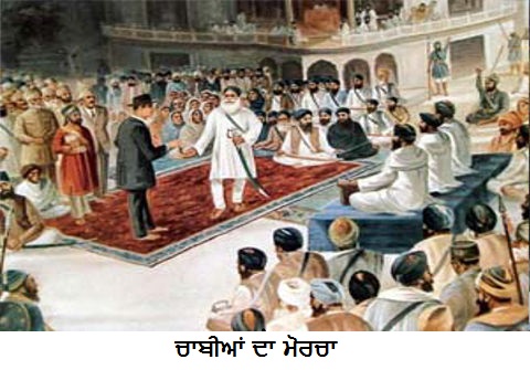 ਚਾਬੀਆਂ ਦਾ ਮੋਰਚਾ : ਸ਼੍ਰੋਮਣੀ ਗੁਰਦੁਆਰਾ ਪ੍ਰਬੰਧਕ ਕਮੇਟੀ ਅਤੇ ਸ਼੍ਰੋਮਣੀ ਅਕਾਲੀ ਦਲ ਵੱਲੋਂ ਸਰਕਾਰ ਤੋਂ ਸ੍ਰੀ ਹਰਿਮੰਦਰ ਸਾਹਿਬ ਅੰਮ੍ਰਿਤਸਰ ਨਾਲ ਸਬੰਧਤ ਤੋਸ਼ਾਖਾਨਾ ਆਦਿ ਦੀਆਂ ਚਾਬੀਆਂ ਲੈਣ ਲਈ ਕੀਤੇ ਸੰਘਰਸ਼ ਨੂੰ ਸਿੱਖ ਇਤਿਹਾਸ ਵਿਚ ਚਾਬੀਆਂ ਦਾ ਮੋਰਚਾ ਕਿਹਾ ਜਾਂਦਾ ਹੈ। ਇਹ ਮੋਰਚਾ 19 ਅਕਤੂਬਰ, 1921 ਤੋਂ ਲੈ ਕੇ 10 ਜਨਵਰੀ, 1922 ਤਕ