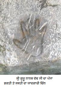 ਪੰਜਾ ਸਾਹਿਬ. ਸ਼੍ਰੀ ਗੁਰੂ ਨਾਨਕ ਦੇਵ ਜੀ ਦਾ ਹਸਨ ਅਬਦਾਲ ਗ੍ਰਾਮ ਪਾਸ ਇੱਕ ਸਿਲਾ ਪੁਰ ਲੱਗਿਆ ਹੋਇਆ ਹੱਥ ਦਾ ਚਿੰਨ੍ਹ , ਜਿੱਥੇ ਹੁਣ ਪ੍ਰਸਿੱਧ ਗੁਰਦ੍ਵਾਰਾ ਹੈ. ਪੰਜਾਸਾਹਿਬ ਦੇ ਪਾਸ ਜਲ ਦਾ ਚਸ਼ਮਾ ਹੈ, ਜਿਸ ਦਾ ਬਹੁਤ ਨਿਰਮਲ ਜਲ ਤਾਲ ਵਿੱਚ ਜਮਾ ਹੋਕੇ ਵਹਿਂਦਾ ਰਹਿਂਦਾ ਹੈ. ਸੰਗਤਿ ਨੇ ਖੋਜ ਕਰਕੇ ਨਿਸ਼ਚਾ ਕੀਤਾ ਹੈ ਕਿ ਸ਼੍ਰੀ ਗੁਰੂ ਨਾਨਕ ਦੇਵ ਜੀ ਇੱਥੇ ੨੪ ਹਾੜ ਸੰਮਤ ੧੫੭੭ ਨੂੰ ਪਧਾਰੇ ਸਨ ਅਤੇ ਇਸੇ ਦਿਨ ਪੰਜਾ ਲੱਗਾ ਹੈ.