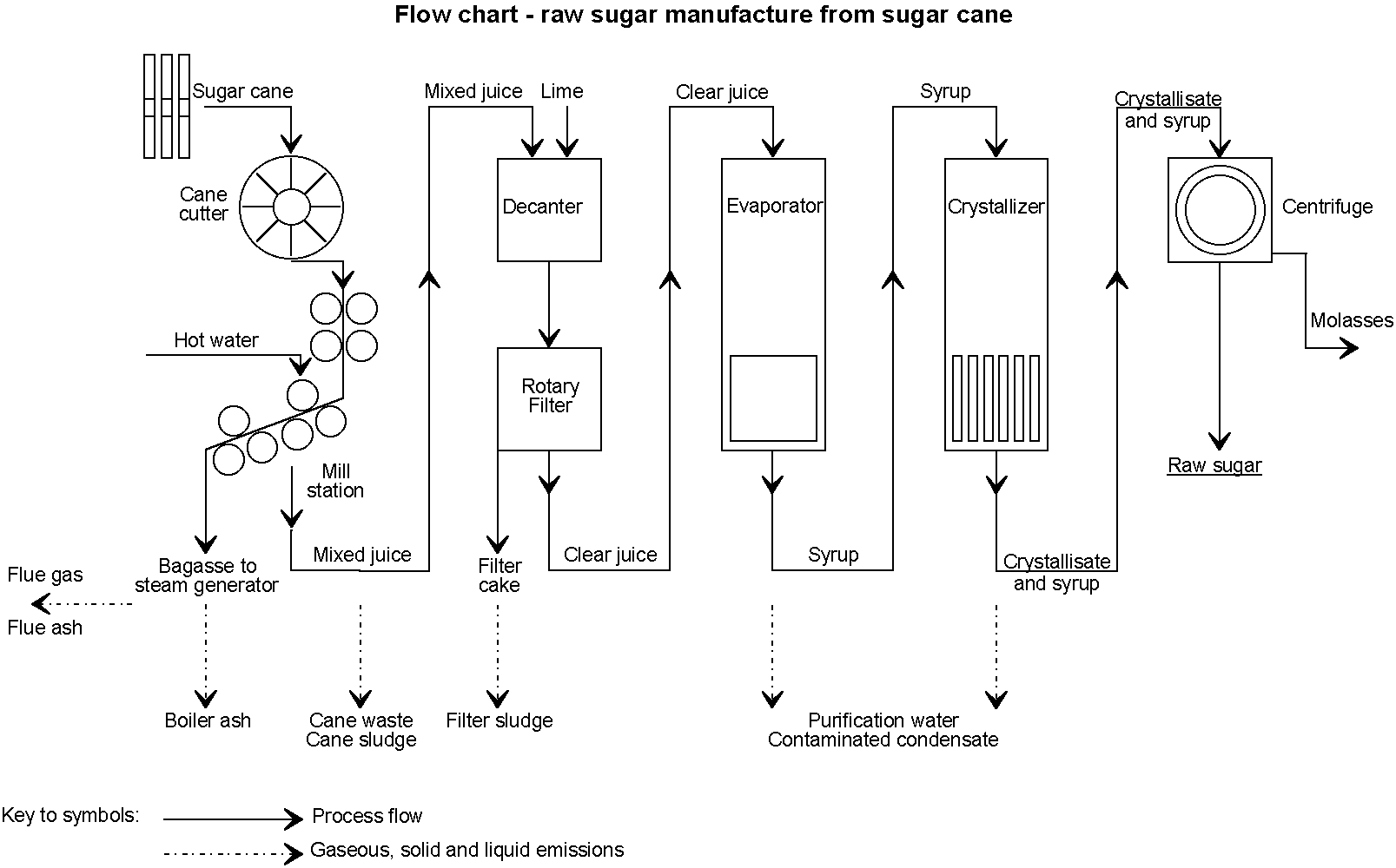 ਗੰਨੇ ਤੋਂ ਖੰਡ ਬਣਾਉਣਾ – ਗੰਨਾ ਉਗਾਉਣ ਵਾਲੇ ਇਲਾਕਿਆਂ ਵਿਚ ਤਿਆਰ ਕੀਤੀ ਖੰਡ ਤਕਰੀਬਨ 85% ਕੱਚੀ ਖੰਡ ਹੁੰਦੀ ਹੈ ਜਿਸ ਨੂੰ ਅੱਗੇ ਹੋਰ ਸੋਧਣਾ ਪੈਂਦਾ ਹੈ। ਕੱਚੀ ਖੰਡ ਬਣਾਉਣ ਦੀ ਵਿਧੀ ਚਿੱਤਰ ਵਿਚ ਦਰਸਾਈ ਗਈ ਹੈ।