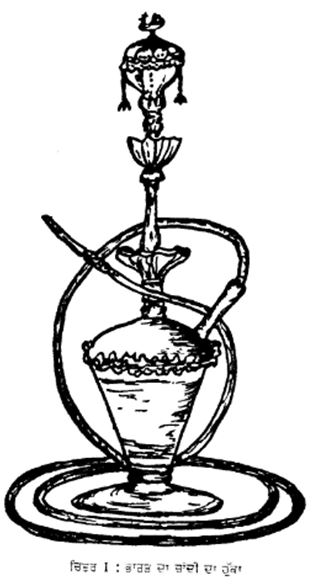 ਭਾਈ ਕਾਨ੍ਹ ਸਿੰਘ ਤਮਾਕੂ ਆਦਿ ਦਾ ਧੂੰਆਂ ਪੀਣ ਲਈ ਵਰਤੇ ਜਾਣ ਵਾਲੇ ਯੰਤਰ ਨੂੰ ਹੁੱਕਾ ਦਸਦਾ ਹੈ। ਤਮਾਕੂ (ਸੁਗੰਧ ਵਾਲਾ ਪੌਦਾ) ਦੇ ਭਾਰਤ ਵਿਚ ਆਉਣ ਤੋਂ ਥੌੜ੍ਹਾ ਚਿਰ ਬਾਅਦ ਹੀ ਹੁੱਕਾ ਮੁਗ਼ਲ ਦੇ ਬਾਦਸ਼ਾਹ ਅਕਬਰ ਦੇ ਦਰਬਾਰ ਦੀ ਸ਼ਾਨ ਬਣ ਗਿਆ। ਬੇਸ਼ੱਕ ਅਕਬਰ ਹੁੱਕਾ ਨਹੀਂ ਪੀਦਾਂ ਸੀ, ਪਰੰਤੂ ਹੁੱਕਾ ਪੀਣਾ ਮਹਿਮਾਨ-ਨਿਵਾਜ਼ੀ ਦਾ ਖ਼ਾਸ ਚਿੰਨ੍ਹ ਸੀ। ਫਾਰਸੀਆਂ ਦੇ ਭਾਰਤ ਆਉਣ ਨਾਲ ਹੁੱਕਾ ਮਹਾਰਾਜਿਆਂ ਅਤੇ ਨਵਾਬਾਂ ਦੀ ਅੱਯਾਸ਼ੀ ਦਾ ਇਕ ਮਹੱਤਵਪੂਰਨ ਅੰਗ ਬਣ ਗਿਆ। ਚਾਂਦੀ ਦੇ ਦਰਬਾਰੀ ਹੁੱਕੇ ਦੀ ਉਚਾਈ ਲਗਭਗ 3 ਫੁੱਟ (0.914 ਮੀ.) ਹੁੰਦੀ ਸੀ, ਜਿਨ੍ਹਾਂ ਨਾਲ ਚਾਂਦੀ ਦੇ ਮੂੰਹ ਵਾਲੀ ਵਲਦਾਰ ਨਲੀ ਲੱਗੀ ਹੁੰਦੀ ਸੀ। ਕੁਝ ਕੁ ਹੁੱਕੇ ਕਾਪਰ ਗਿਲਟ ਦੇ ਬਣੇ ਹੋਏ ਗੂੜ੍ਹੇ ਨੀਲੇ ਰੰਗ ਅਤੇ ਮੁਲੰਮਾ ਕੀਤੇ ਹੋਏ ਹੁੱਨਰ ਦਾ ਆਪਣੇ ਆਪ ਵਿਚ ਇਕ ਨਮੂਨਾ ਹੁੰਦੇ ਸਨ। ਹੁੱਕੇ ਦਾ ਉਪਰਲਾ ਤਮਾਕੂ ਵਾਲਾ ਭਾਂਡਾ, ਜਿਸ ਨੂੰ ਚਿਲਮ ਕਿਹਾ ਜਾਂਦਾ ਹੈ, ਵੀ ਹੁੱਨਰ ਦਾ ਉੱਤਮ ਨਮੂਨਾ ਹੁੰਦਾ ਸੀ।